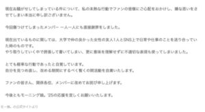 さらに所属するハロー!プロジェクトも事態を重く見て、一定期間の活動休止を発表。